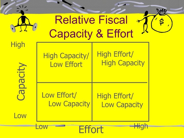 Capacity & Effort Measuring capacity is a good place to start examining how much a nation, state, or locality can afford to spend on education The relative effort of that spending – the degree of fiscal exertion a community commits to its education resources – tells a much more robust story about what people value
