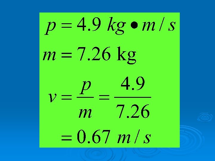 PROBLEM 3 A baseball of mass 0. 14 kg is moving at 35 m/s. A) Find the momentum of the baseball. B) Find the velocity of a bowling ball, mass 7. 26 kg, if its momentum is the same as the baseball.