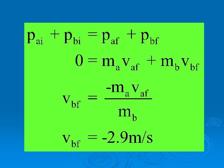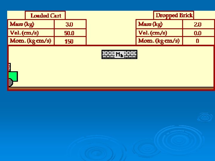 SKATER/MEDICINE BALL EX Before Collision Skater 0 Medicine ball 300 Total 300 After Collision 60 * v 15 * v 300