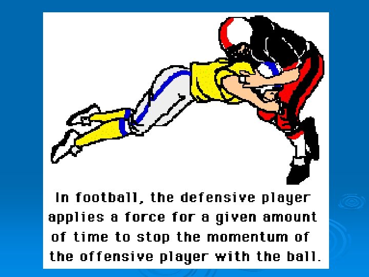 Applications of Impulse Momentum Theorem Ø Used to determine stopping distances and safe following distances of cars and trucks. Ø Used in designing safety equipment that reduces force exerted on the object during collisions. Example-nets and giant air mattresses for fire-fighters. Ø Also used in sports equipment and games.