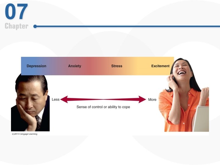 Stress, Anxiety, and Excitement • Vulnerabilities in mental illness contribute to physical illness – Stress – Perceived uncontrollability, low social support, negative affect • Interpretation of physiological response and situation – Seems critical in the stress response – The role of self-efficacy