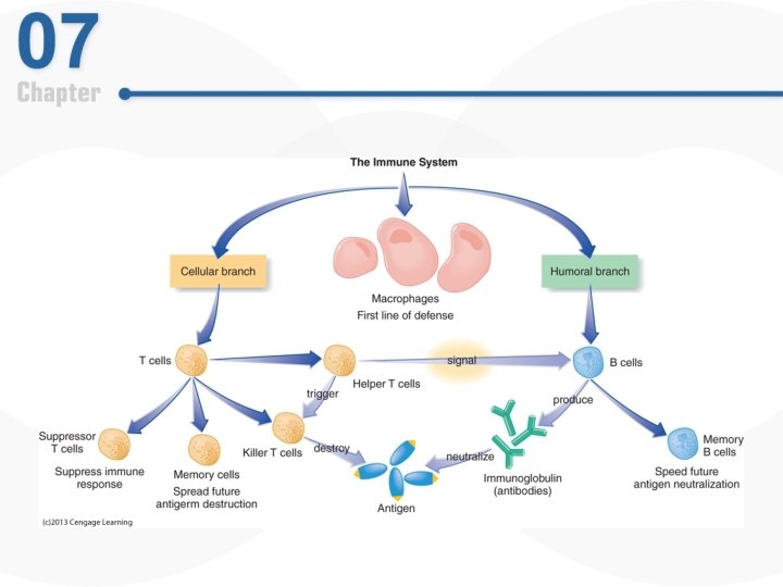 Stress and the Immune System: The Role of Leukocytes • Leukocytes: subtypes and functions – Macrophages • First line of defense, destroy antigens, signal lymphocytes – Lymphocytes • B cells (humoral branch) and T cells (cellular branch) – B cells produce antibodies, but T cells do not – Functional role of B and T cells and associated memory cells