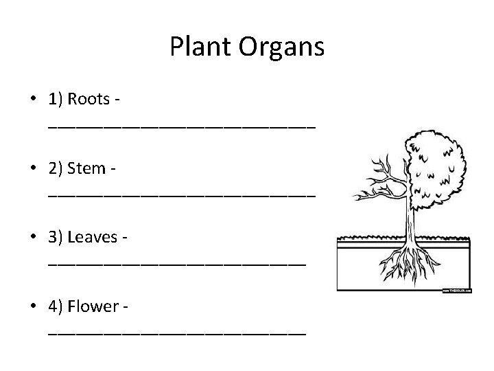 Plant Organs • Flowering plants make up the largest group of plants on Earth. • Has 4 main organs: – 1) Roots – 2) Stems – 3) Leaves – 4) Flowers