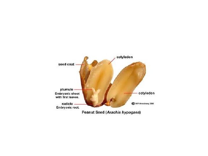 Anatomy of Seed • Embryo – ______________ • Cotyledon – ______________ • 3 things each seed has: – Embryo – Cotyledon (stored food) – Seed coat