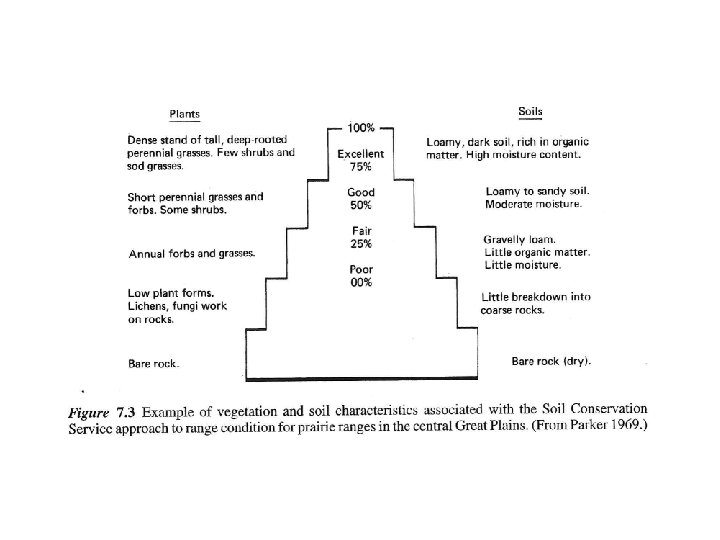 History of condition and trend 1. Dyksterhuis (1949) contribution 2. Reflects plant response to grazing 3. Validity of Clements and Dyksterhuis theories 4. Threshold concepts a. Is brush control needed? b. Should grazing be terminated?