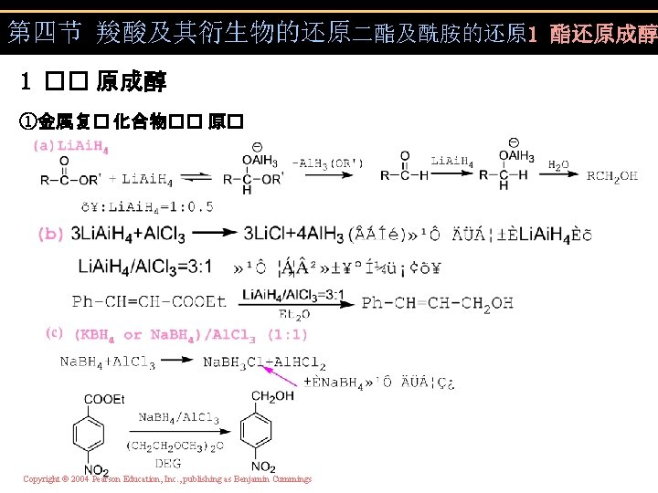 第六节 氢解反应 一 脱卤氢解 (b)金属复氢化合物(Li. Al. H 4) Copyright © 2004 Pearson Education, Inc. , publishing as Benjamin Cummings