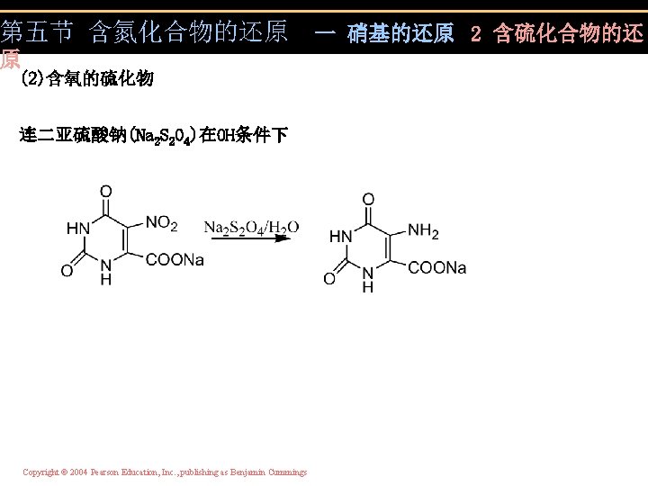 第五节 含氮化合物的还原 一 硝基的还原 2 含硫化合物的还原 (1)硫化物 Na 2 S 2 (NH 4)2 S Na. HS Copyright © 2004 Pearson Education, Inc. , publishing as Benjamin Cummings