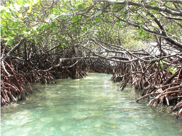 • Warm, wet climate produces thick, mixed forests of pine and other trees, or marshy stands of mangrove trees. – Tropical trees that grow in swampy ground along coastal areas.
