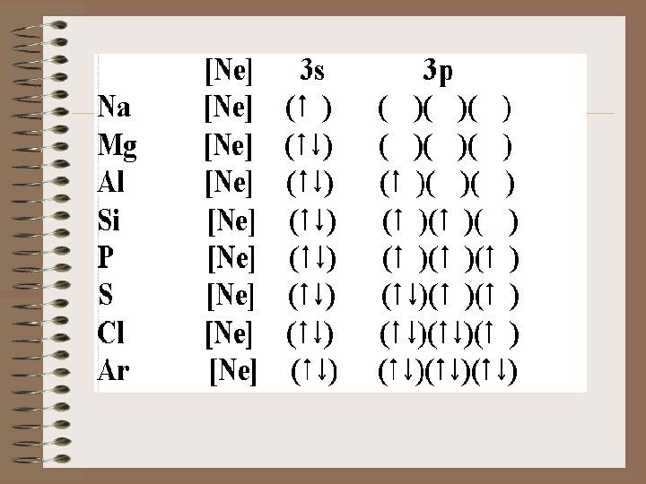 8 O 9 F 1 s 22 p 4 1 s 22 p 5 10 Ne 11 Na 12 Mg 13 Al 14 Si 1 s 22 s 22 p 63 s 1 1 s 22 s 22 p 63 s 23 p 1 1 s 22 p 63 s 23 p 2 15 P 16 S 17 Cl 18 Ar 1 s 22 p 63 s 23 p 3 1 s 22 p 63 s 23 p 4 1 s 22 p 63 s 23 p 5 1 s 22 p 63 s 23 p 6