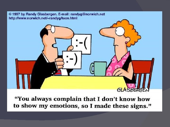 Influences on Emotional Experience and Expression � Culture �Geography—colder less expressive, warmer more expressive � Display rules �Rules that govern how we manage and express emotion � Technology �Does not allow for nonverbal comm. �Use LOL or emoticons �Support groups can be very helpful