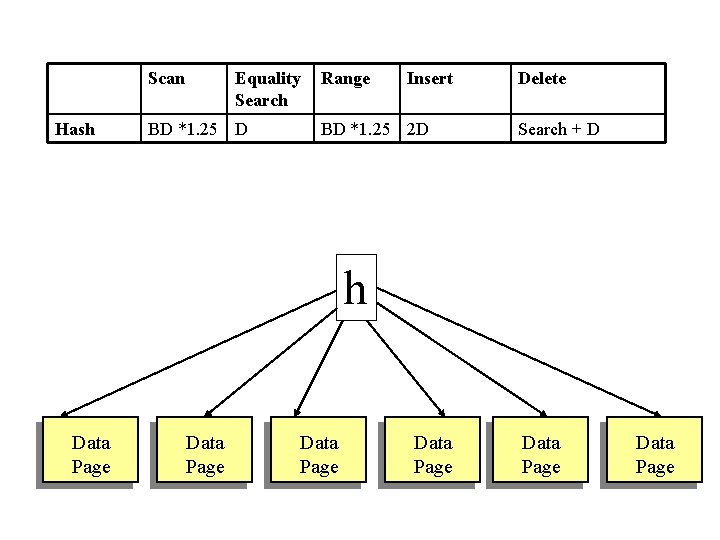 Scan Hash Equality Search BD *1. 25 D Range Insert BD *1. 25 2 D Delete Search + D h Data Page Data Page