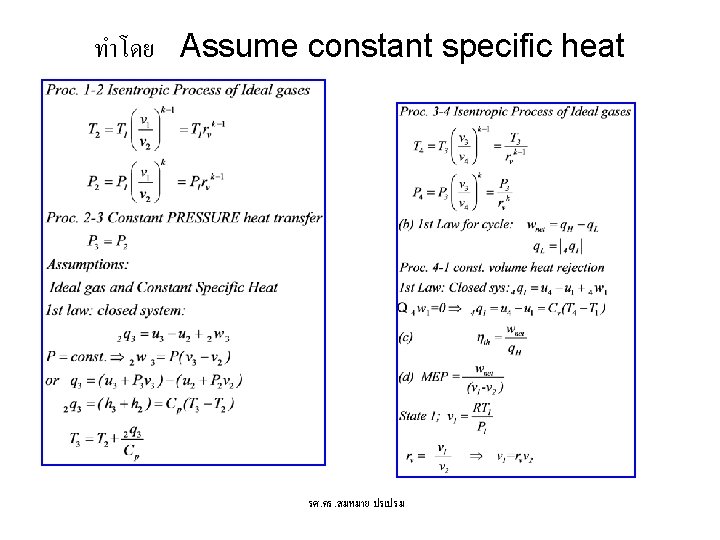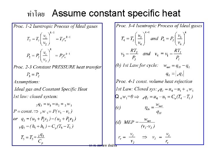 Analysis of Air Standard Diesel Cycle Review of equations used: รศ. ดร. สมหมาย ปรเปรม