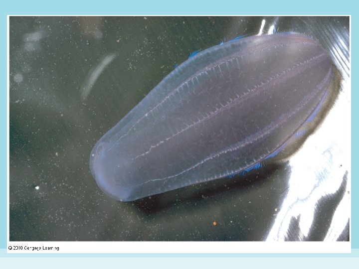 Phylum Ctenophora • Planktonic, nearly transparent • Ctenophore structure – named for 8 rows of comb plates (ctenes) which the animal uses for locomotion • ctenes are composed of large cilia – exhibit radial symmetry – lack stinging cells – bioluminescent