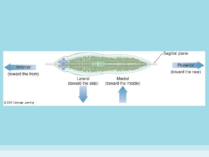• Now we will talk about animals with bilateral symmetry – all other animals have this type of symmetry – Bilateral symmetry • body parts arranged such that only one plane through the mid-line of the central axis divides animal into similar right and left halves • allowed for streamline body shape increasing mobility • favored concentration of sense organs at one end of animal (cephalization)