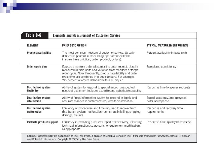 Four distinct dimensions of customer service: ¨ Time n n n ¨ Dependability n ¨ more important than the absolute length of lead time Communications n n n ¨ cycle time safe delivery correct orders pretransaction posttransaction Convenience n service level must be flexible