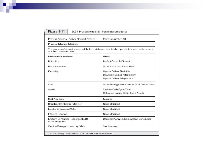 Metrics ¨ four are widely used across multiple industries: n internal metrics item fill rate ¨ line fill rate ¨ n external metrics order fill rate ¨ perfect order ¨
