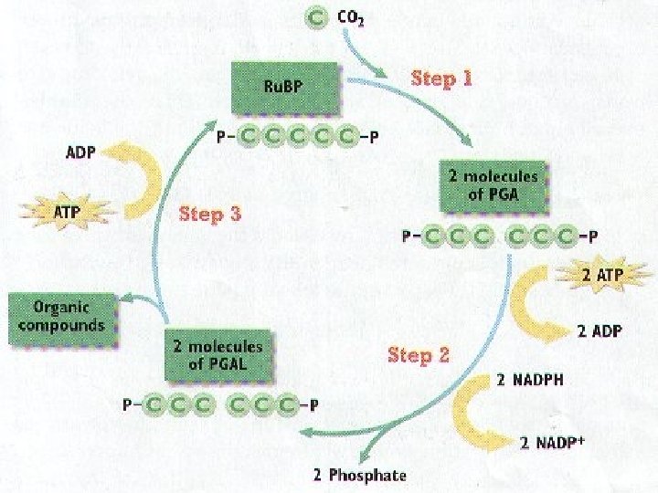 Step 3 § One of the new 3 -carbon compounds is used to make the initial 5 -carbon compound that originally joined to the Carbon Dioxide.