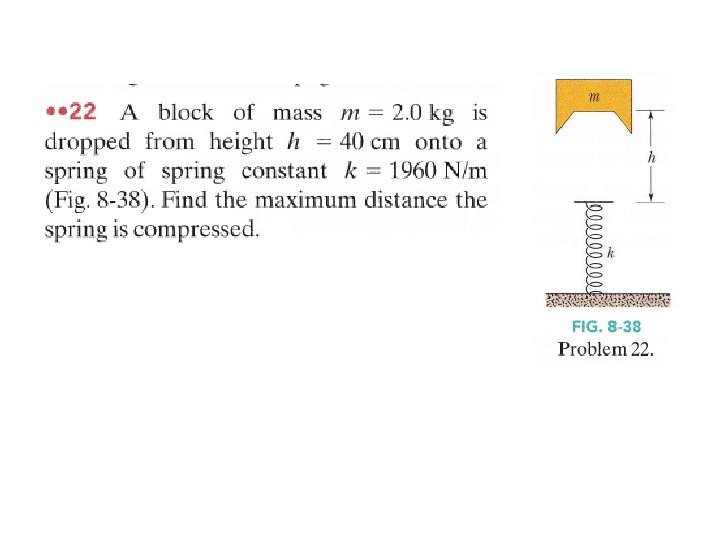 Work done on a system by an external force Work done on a system , friction involved (Block–floor system) F-fk=ma; v 2=v 02+2 ad; a=(v 2 -v 02)/2 d F=fk+ma= fk+m(v 2 -v 02)/2 d Wa =Fd=fkd+m(v 2 -v 02)/2 Wa =fkd + K= Eth + Emec Eth=fkd Wa= K+ U= Emec + Eth