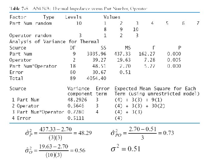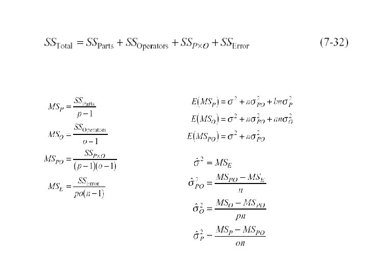Gauge R&R Studies • Usually conducted with a factorial experiment (p: number of randomly selected parts, o: number of randomly selected operators, n: number of times each operator measures each part)