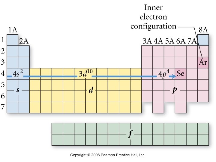 **Predict the outer e- config for each element: 1) strontium 2) bromine 3) cadmium 1) 5 s 2 2) 4 s 24 p 5 3) 4 d 105 s 2 Summary -periodic table is divided into four blocks (s, p, d, and f) -the group # of a main-group element is equal to the number of valence e-the row # of a main-group element is equal to the highest principal quantum # of that element
