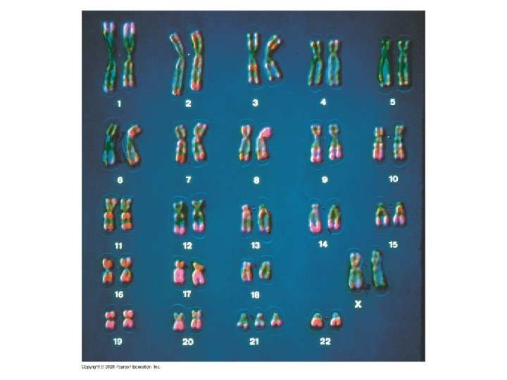 8. 22 CONNECTION: Abnormal numbers of sex chromosomes do not usually affect survival § Sex chromosome abnormalities tend to be less severe as a result of – Small size of the Y chromosome – X-chromosome inactivation – In each cell of a human female, one of the two X chromosomes becomes tightly coiled and inactive – This is a random process that inactivates either the maternal or paternal chromosome – Inactivation promotes a balance between the number of X chromosomes and autosomes Copyright © 2009 Pearson Education, Inc.