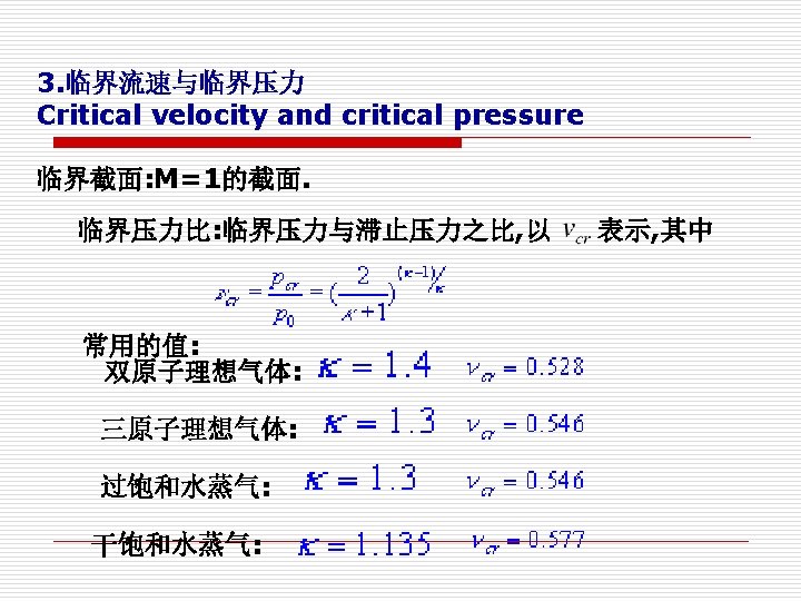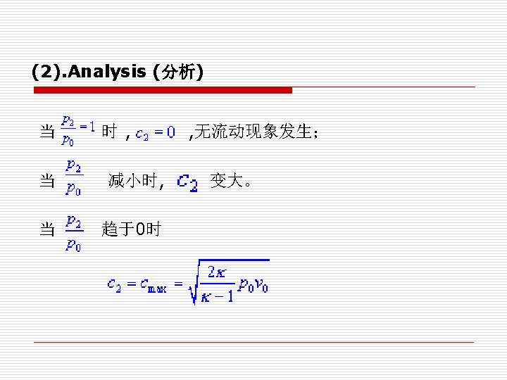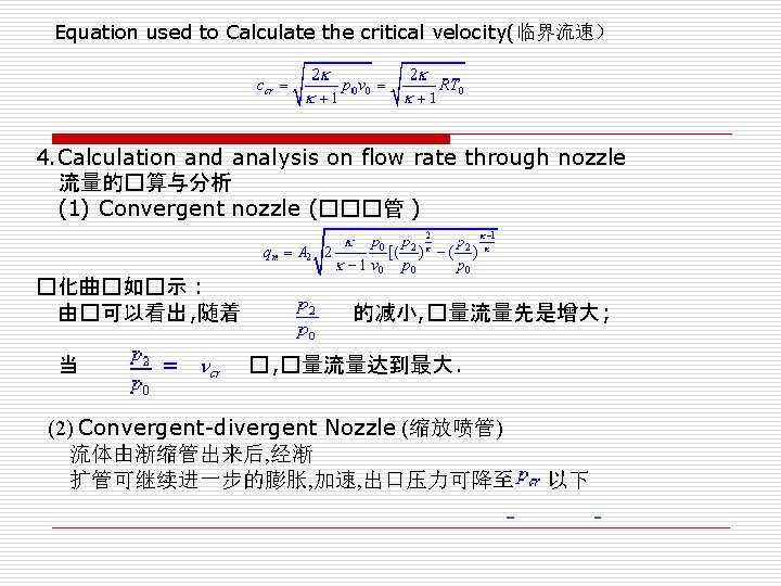2. 气体流速的�算与分析 Calculation and Analysis on flow Velocity (1). Caluclation Equation (�算式 ) For Isentropic flow(�于定�流� )