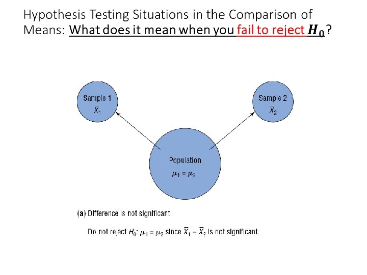 The null and alternative hypotheses If the researcher’s claim is that there is a difference between two means, the null and alternative hypothesis will look like