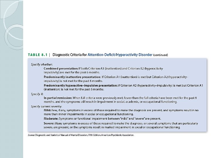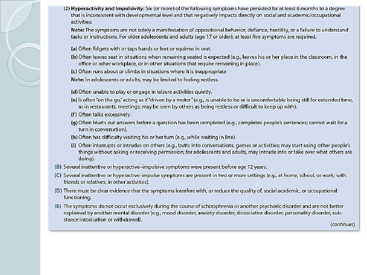 Other diagnostic criteria ● Symptoms present before age 12 ● Occur across two or more settings