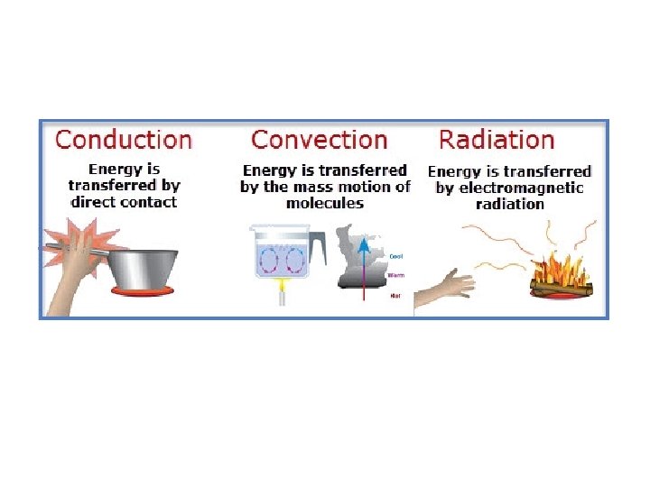 Conduction • 2 objects touch and thermal energy moves from hotter to cooler object – Conduction • When no more thermal energy is moving? – Thermal equilibrium