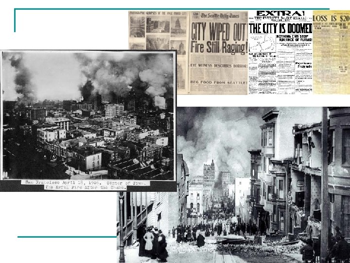Damage from earthquakes n n Blocks of rocks moving on either side of a fault can crack roads, buildings, dams… Sometimes and earthquake can crack a building, and an aftershock can take it down q n Aftershock: A smaller earthquake that follows a more powerful earthquake in the same area Fires: 1906 San Francisco earthquake: fires caused more than 90% of the building damage