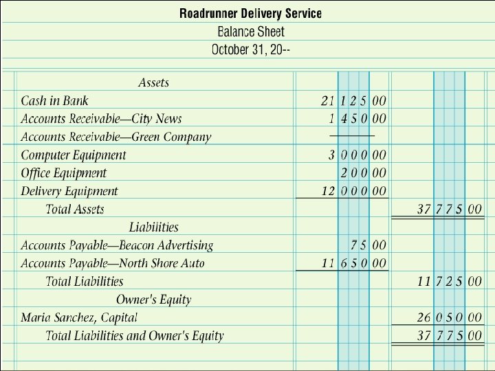 financial statements sole proprietorship 1. 2. income statement shows net income or net loss for period statement of changes in owner’s equity summarizes changes in owner’s capital as result of business transactions during period 3. 4. balance sheet reports on assets and financial claims to those assets (A=L+OE) statement of cash flows