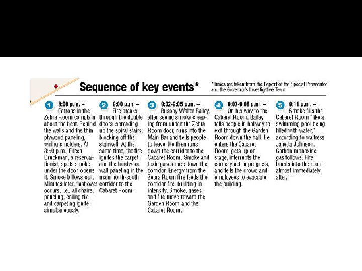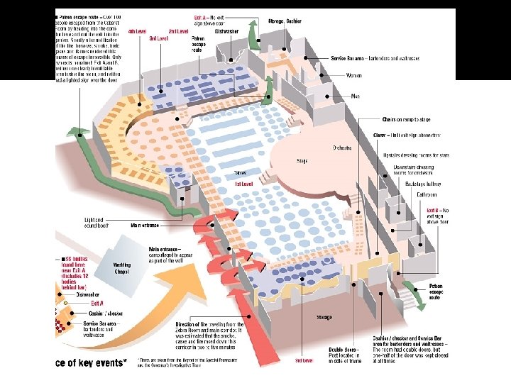 The Station (Night Club Fire) February 20, 2003 in Rhode Island Pyrotechnics (Great White) starts fire through contact with flammable sound proofing materials. Within 3 minutes, building was on fire with toxic smoke spreading through the building.