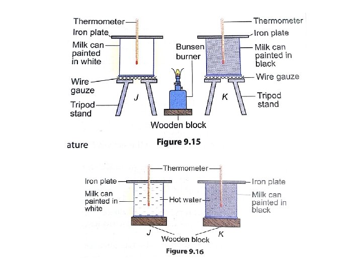 • When object absorb heats, its temperature increases • When object radiates heat, its temperature decreases • Dark and dull surfaces are better heat absorbers and radiators compared to white and shiny surfaces.
