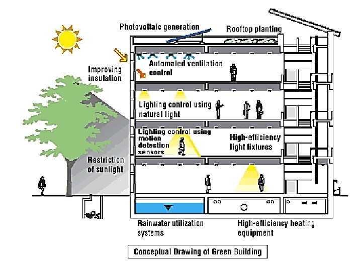 Heat concept on daily life • The Green Building Concept : reduce the effects of rapid development on the environment and our health. • It concern on : – Has high energy efficiency through the usage of solar energy or renewable energy – Has good water flow system, air circulation and lighting – Uses recycled materials