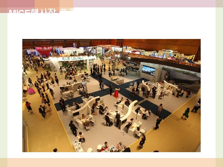 Supplier & Buyers Meeting Professionals International (MPI) is the leading international organization of meeting planners. • Membership reflects balance between planners and suppliers • #1 PCO in Korea : INTERCOM http: //www. intercompco. kr/ • Year of 2001 retested PCO company : 75 PEO company : 30 • Year of 2010 Convention Company : 286 Exhibition Company : 315