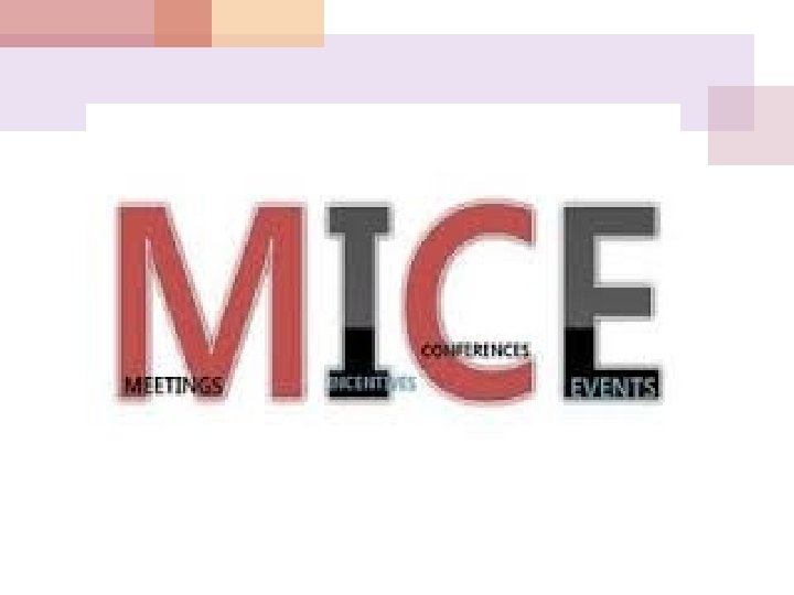 Definitions of MICE Incentive: meeting event as part of a program which is offered to its participants to reward a previous performance Exhibition: events at which products and services are displayed