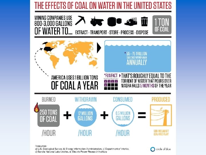 Agriculture, Industry and Household Needs Industry- the second largest user of water worldwide. Processes include: Power plants: cooling and condensing steam. Processing of metals (mining, melting/cooling). Manufacturing: plastic, paper, cotton, etc. It takes 1. 85 gallons of water just to manufacture the plastic for a average bottle of water! One pound of cotton requires 101 gallons of water. Paper mills use approximately 17, 000 gallons per ton of paper. http: //www. mntap. umn. edu/paper/water. html