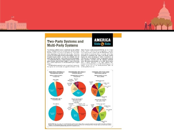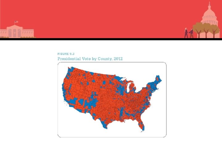 Political Parties: Geographic versus Proportional Representation • Geographic versus proportional representation – U. S. party representation is geographic winner takes all (WTA) • Congress in single-member districts (winner takes all) • U. S. Senate allocated by state (winner takes all) • President by way of electoral college (winner takes all) – Many democracies have proportional representation systems. • Parties get a share based on the vote.
