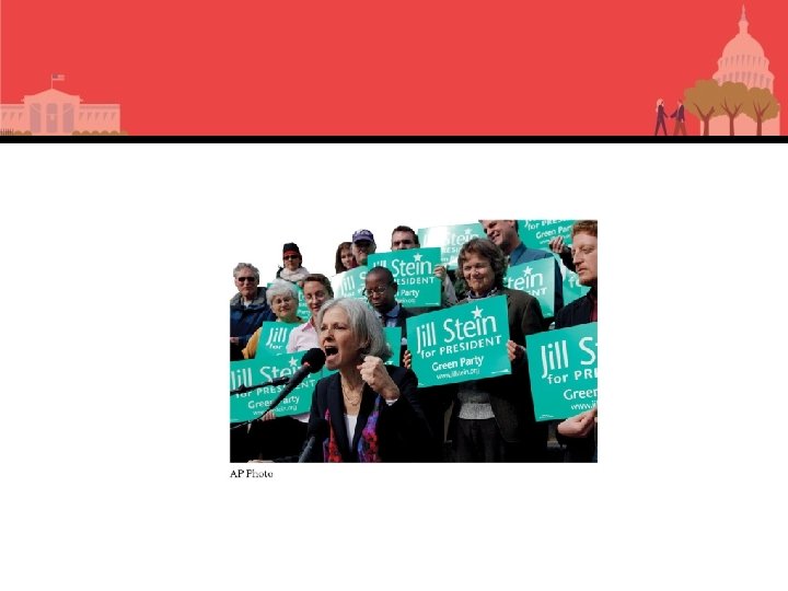 What Are Political Parties? American Two-Party System • American two-party system – Winner takes all single-member districts • If candidates wins by 20 percent, or. 001 percent, same result – Losing party gets no representation from that specific district. • Unlike proportional representation systems – Multimember districts or states, party wins number of seats in proportion to the share of votes won in election • Third parties less viable; voters feel “wasted vote” – No incentive to vote for candidates who cannot win because that point of view will not get represented.