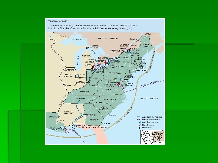 The War of 1812 § War Hawks of Congress had tolerated enough of Britain’s presence on American soil. § President Madison finally asked Congress for a declaration of war on June 1, 1812. § British forces occupied Washington in 1814, burning the Capital and presidential mansion. § Hostilities ended by the Treaty of Ghent on Christmas Eve, 1814.
