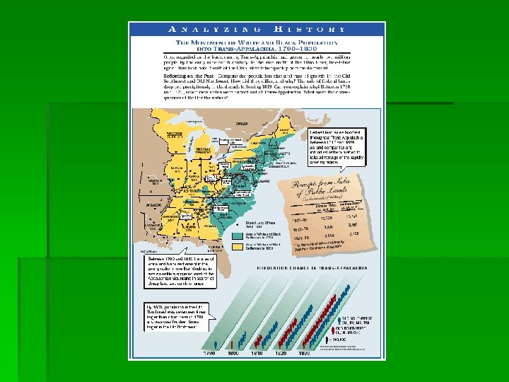 Trans-Appalachia § The Trans-Appalachia region consisted of the lands west of established white settlement known as the “backcountry” or “frontier. ” § Settlers, drawn by the promotions of land speculators, moved west into the region in astounding numbers between 1790 and 1810.