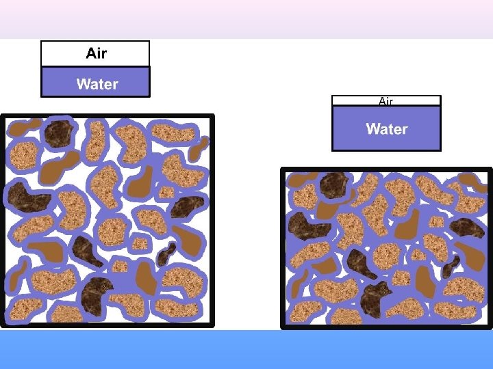 Soil Composition • The physical and chemical composition of soil also affects its waterholding capacity. • Soil consists of decayed organic matter, called humus, and minerals. • Humus creates pores in the soil, thereby increasing a soil’s ability to retain water. • The minerals in soil have different particle sizes, which are classified as sand, silt, or clay. • Soil with a high percentage of course particles, such as sand, has relatively large pores between its particles that allow water to enter and pass through the soil quickly. • In contrast, soil with a high percentage of fine particles, such as clay, clumps together and has few or no spaces between the particles. • Such small pores restrict both the amount of water that can enter the ground and the ease of movement of water through the soil.