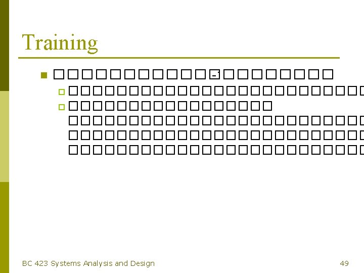 Training p Outside Training Resources : ������������ n n �������������������������� ������ -: Consultants p Universities p Industry associations p Information management organizations p BC 423 Systems Analysis and Design 45