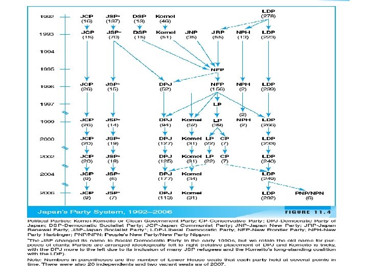 The Japanese Party System: Since 1993 § Stability disappeared for a while § LDP tried to put together coalition party § Coalition was established § Contained seven parties except the LDP and the Communists § Goal: to complete the reform of the electoral system that the LDP had failed to accomplish