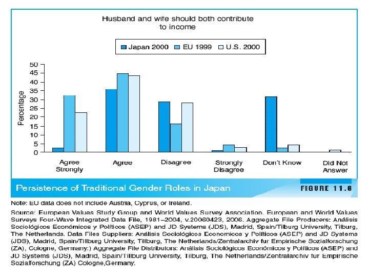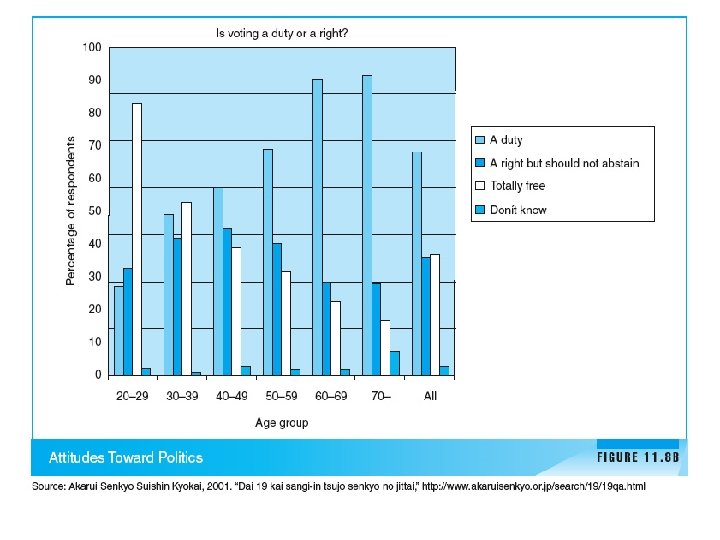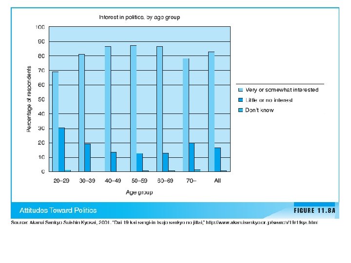 Political Culture and Issue Cleavages § Women: At home and in the workplace § “good wives and wise mothers” § Equal Employment Opportunity Law § Glass ceiling low and impenetrable § Little help from government; little social welfare § Japanese women marry later and bear fewer children § Impact of aging society