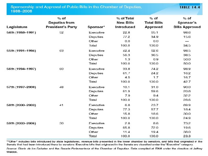 Political Structure and Institutions: The Legislative Branch § Federal Congress has two houses: § A 128 member upper chamber, the Senate § A 500 -member lower house, the Chamber of Deputies § Both employ a mixed-member system § Some of the members are elected by plurality vote in SMD § Others are elected by a system of compensatory proportional representation on closed-party lists § Electoral rules for Senate and Chamber of Deputies § Mixed-member system effects on the party system § Complicates creating majorities
