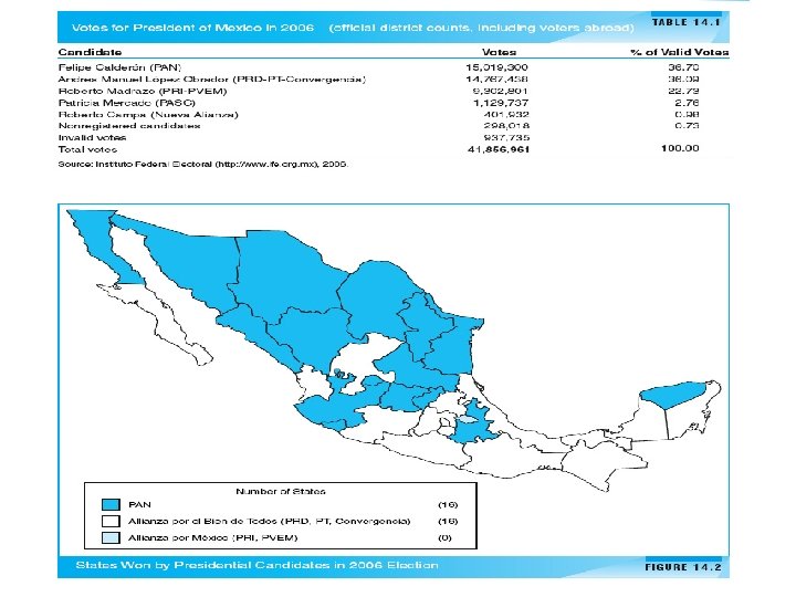 Background: Mexico § 2006 presidential election- three strong candidates § Very close § Not typical; Usually election dominated by by the Partido Revolucionario Institutcional (PRI) § Economic crisis § 1988 election brought a tidal wave of antigovernment voting § PRI got a bare majority