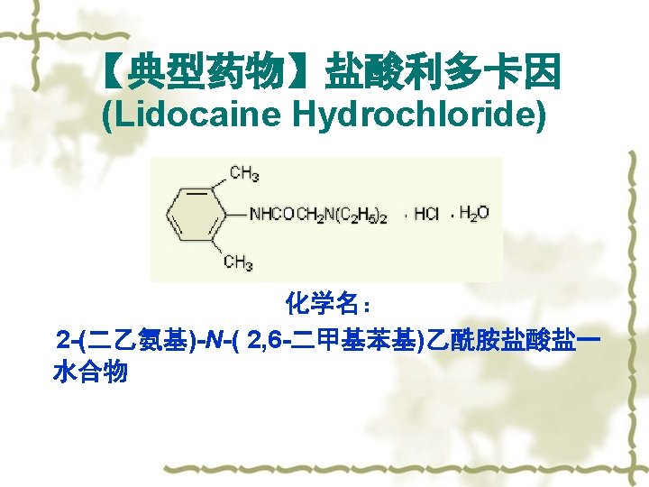 1. 2 Structure Type of LA 1. 2. 2 酰胺类 Amides TD:利多卡因 More active,double active time,more pemetrable and diffusive,antiarrythmia