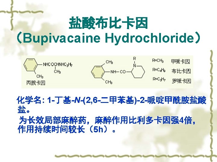 1. 2 Structure Type of LA 1. 2. 2 Amides Other drugs:丙胺卡因, 甲哌卡因, 布比卡因, 罗哌卡因