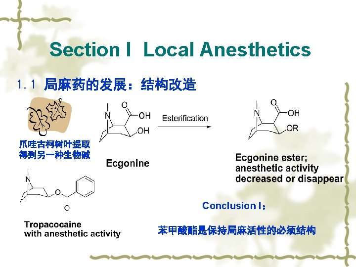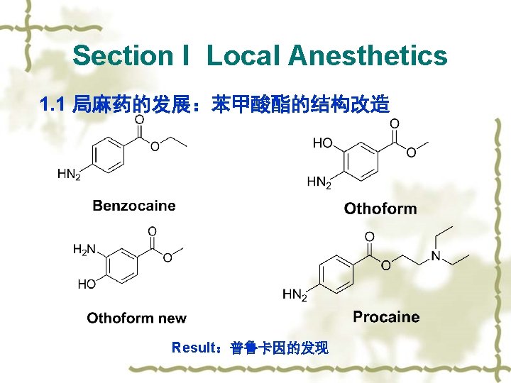 Section I Local Anesthetics 1. 1 局麻药的发展:结构改造 Structure Modification